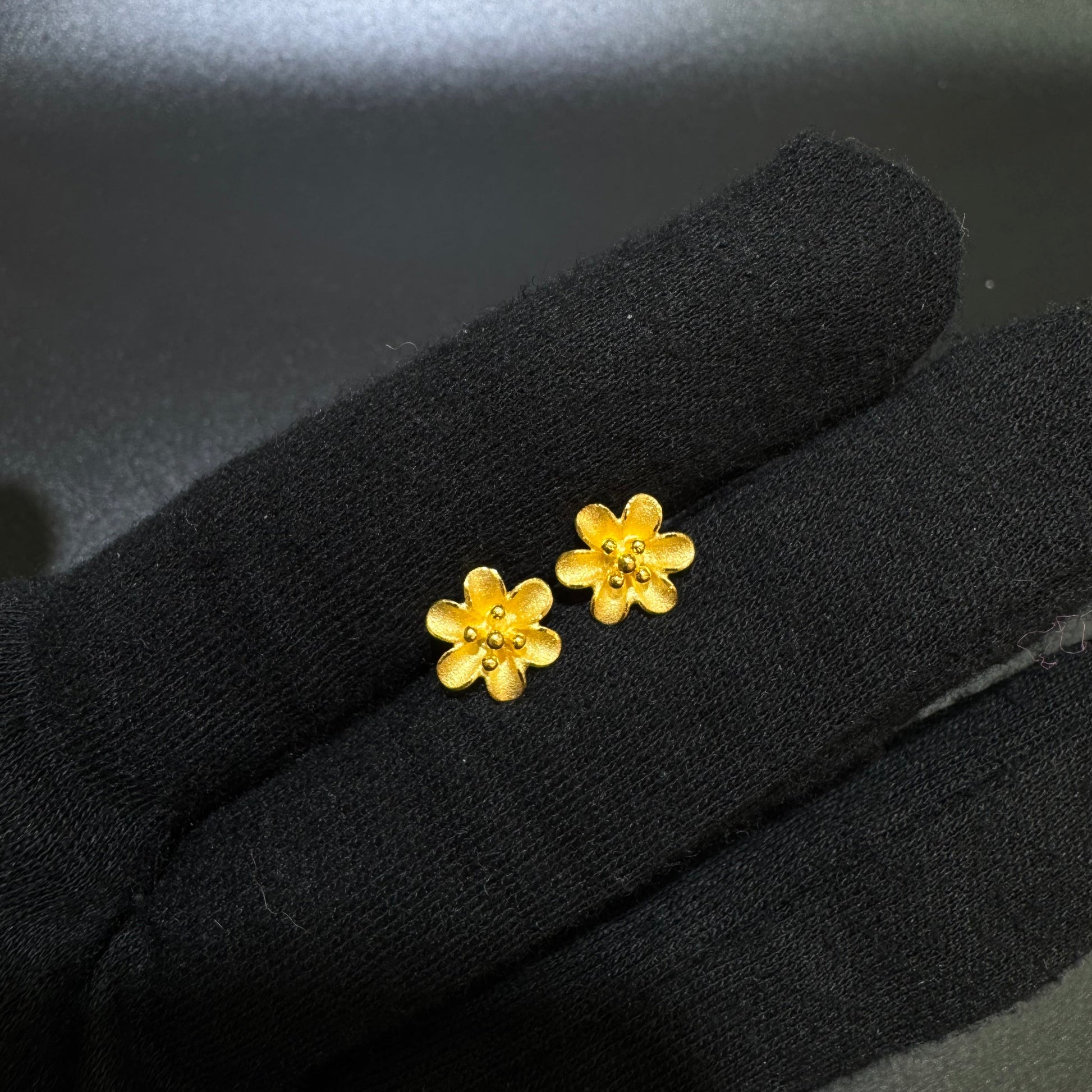 Let your style blossom with these beautiful 24k gold earrings, perfect for gifting or as a luxurious addition to your jewelry collection. Due to the softness of gold, the earrings post may bend due to the softness of gold - handle with care to avoid damage/bending. The push back closure ensures a comfortable fit, making them perfect for special occasions!