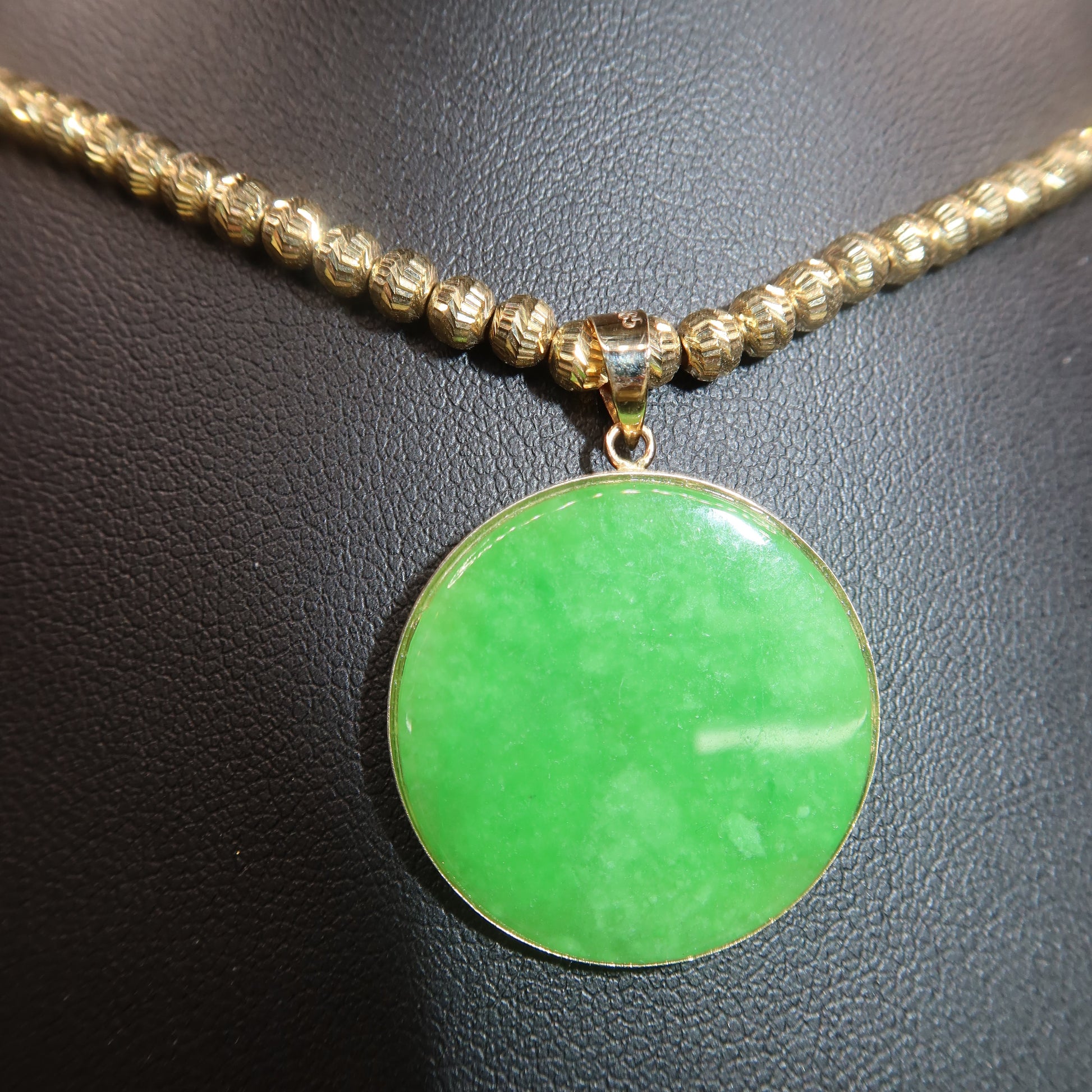 Crafted from jade, the pendant features an intricate dragon design, representing power, strength, and good fortune. Set in 14K gold, this pendant is a perfect balance of elegance and boldness, making it a timeless addition to any collection.